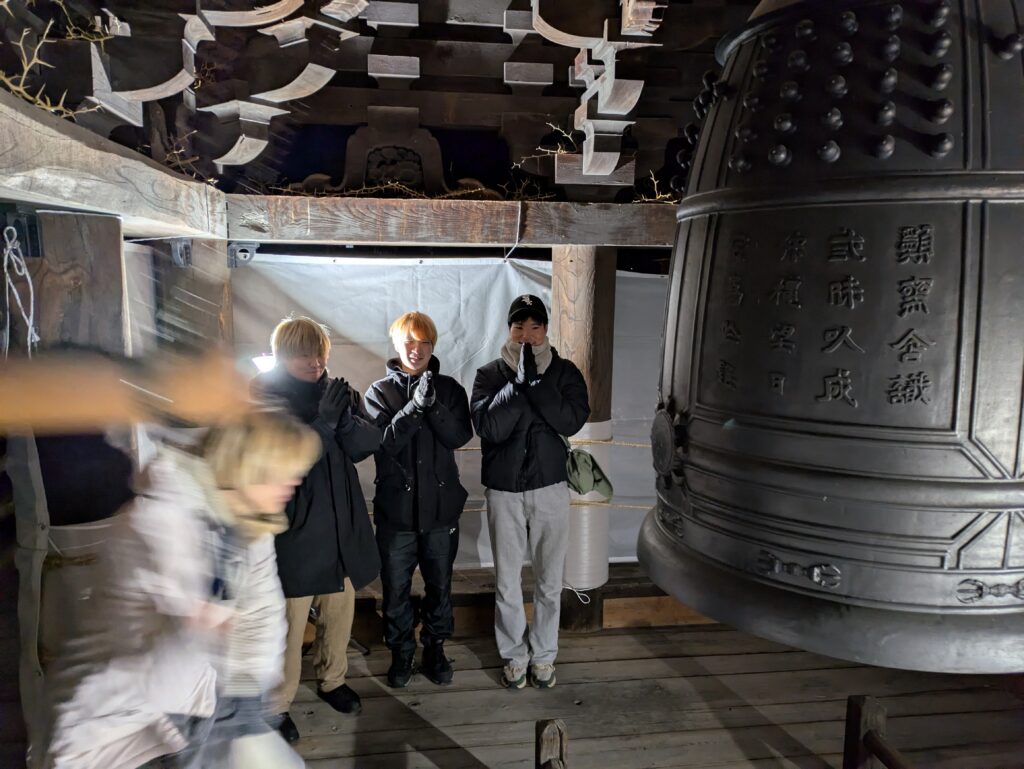さて、去る12月31日の午後9時ころから、本寺恒例の除夜の鐘が行われました。当日は午後9時過ぎより、清水西区の町会長さんを先頭に、三々五々とお子様連れのご家族の方々が来寺くださいました。毎年欠かさず来寺くださる顔なじみの方もいらっしゃるようになりました。お一人一回から二回、鐘を撞いた後静かに合掌する。「南無阿弥陀仏」とお称えする。そんな中で、新しい年に向けてのエネルギーが湧いてきているようにお見受けいたしました。遠くは三郷から、60人ほどの方にご来寺いただきましたが、来年はもっと多くの方に鐘を撞いていただけるよう、考えてまいりたいと存じます。なお、108つの煩悩を払うために除夜の鐘を撞くのだと言われますが、その煩悩を打ち払うことができないのが人間である、というのがわが浄土真宗の考え方。だからこそ、阿弥陀仏の本願におすがりをします。鐘を撞いて合掌し、称名念仏すること、そこに本寺では除夜の鐘の意味を見出しています。