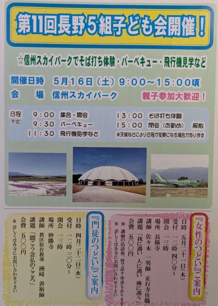 特に、4/22(水)に行われる「門徒のつどい」は本寺を会場としております。ぜひ多くの方にご参加いただければと存じます。また、お子様のいらっしゃるご家庭では、5月16日の子ども会にご参加されてみてはいかがでしょうか。(基本は中学生以下ですが。)どうぞ親子でご参加ください。おじいちゃん、おばあちゃんとお孫さんとでご参加いただいても構いません。